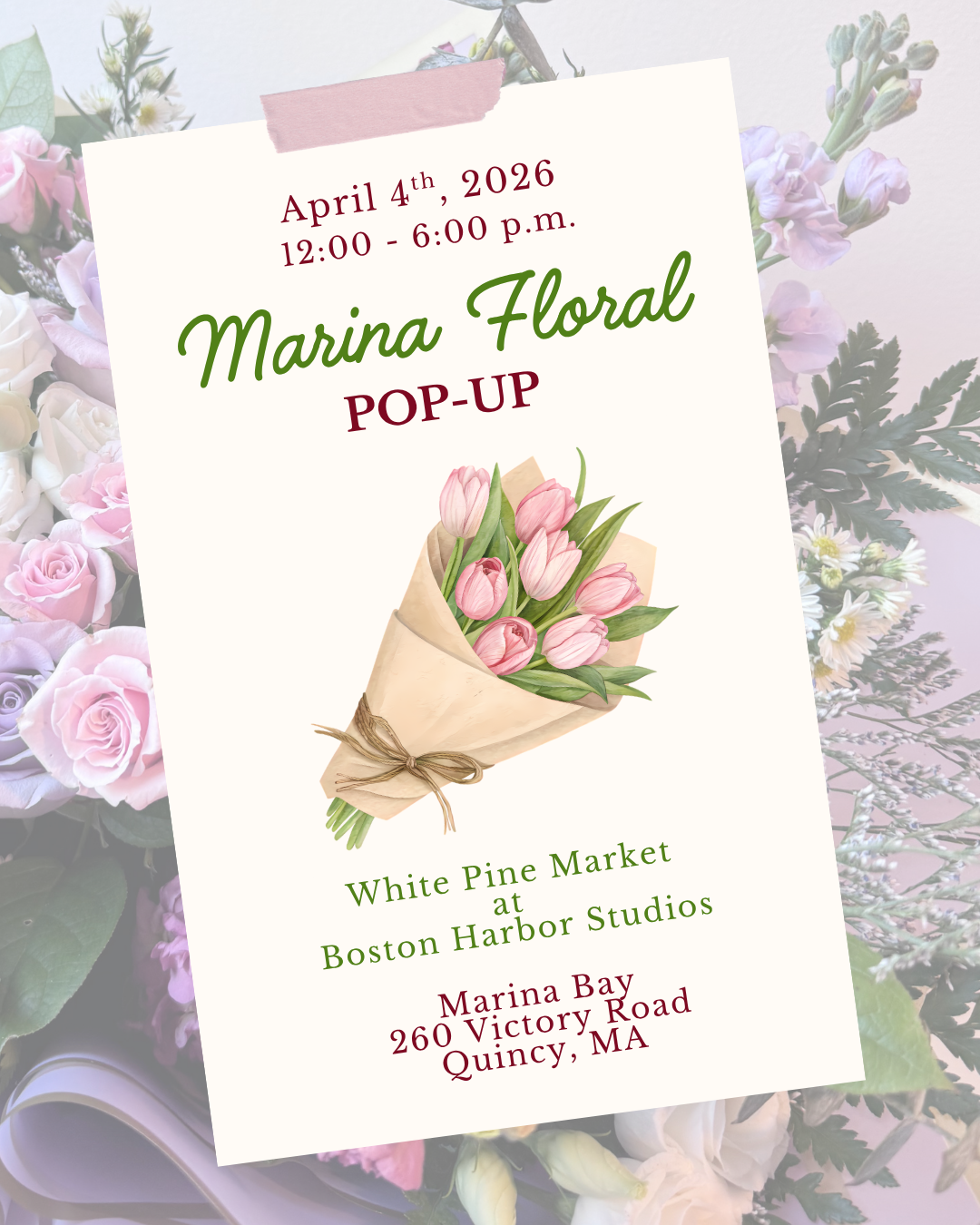 We will be popping up at White Pine Market so come treat yourself and your loved ones to some beautiful flowers and make a day of it in beautiful Marina Bay!